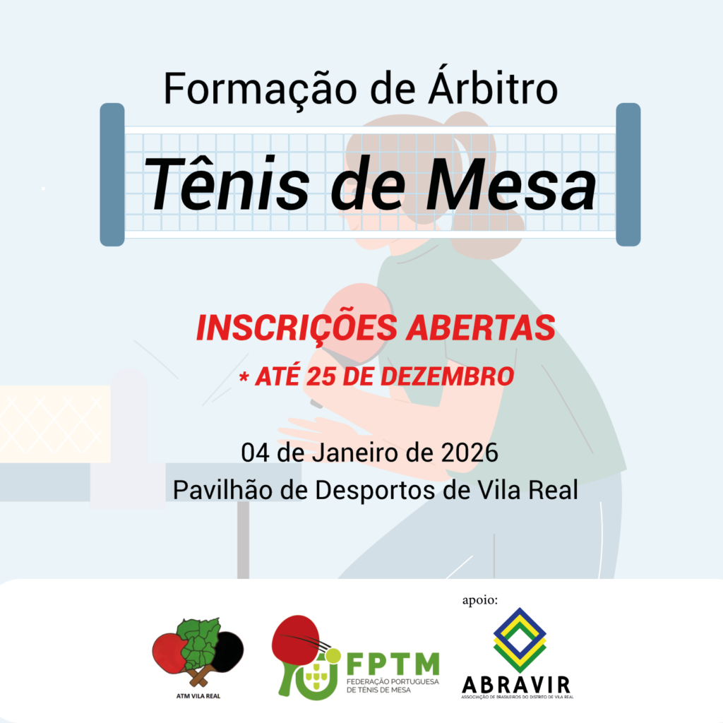A Associação de Brasileiros do Distrito de Vila Real (ABRAVIR) divulga uma importante iniciativa da Associação de Ténis de Mesa de Vila Real (ATMVR) e a Federação Portuguesa de Ténis de Mesa (FPTM).